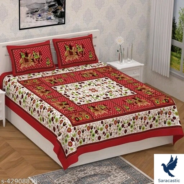 Classic Bedsheets Fabric: Cotton Type: Flat Sheets Quality: Superfine Print or Pattern Type: Jaipuri No. Of Pillow Covers: 2 Ideal For: Adult Thread Count: 144 Size: Double Queen Multipack: 1 Country of Origin: India