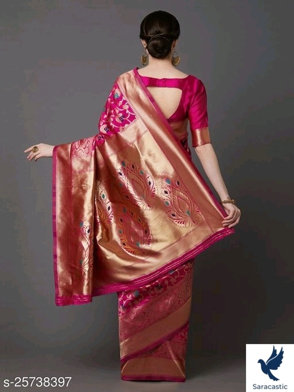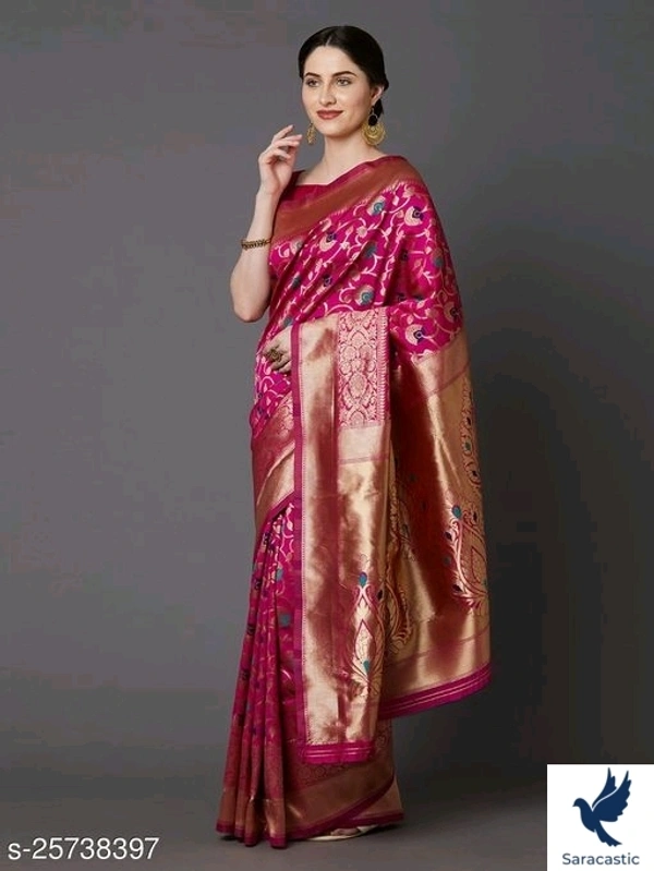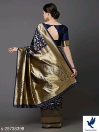AD Saree Mall Navy Blue Festive Silk Blend Banarasi Saree with unstitched blouse