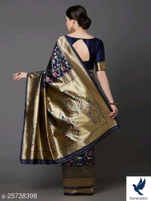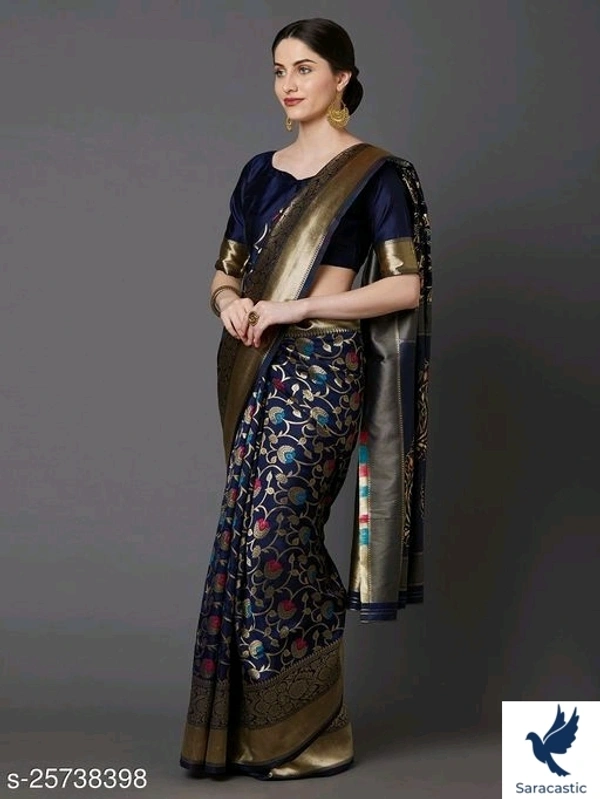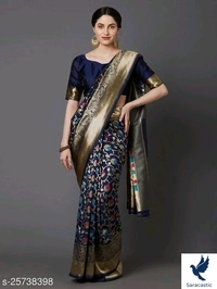 AD Saree Mall Navy Blue Festive Silk Blend Banarasi Saree with unstitched blouse Saree Fabric: Silk Blend Blouse: Running Blouse Blouse Fabric: Silk Blend Pattern: Woven Design Blouse Pattern: Solid Multipack: Single Navy Blue banarasi woven design saree and has a woven design border Blouse Piece The model is wearing a stitched version of the blouse piece. The saree comes with an unstitched blouse piece Sizes: Free Size (Saree Length Size: 5.5 m, Blouse Length Size: 0.9 m) Country of Origin: India