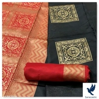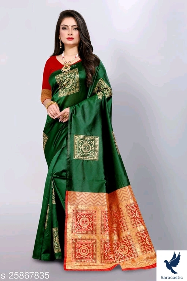 Length: 5.5 meter plus 0.8 meter Running blouse piece. Saree Is Best Selling In This Price Range Comes With 3 Different Color Green Blue and Black, Light Wight Jacquard Red Pallu Saree With Red Blouse With Border.