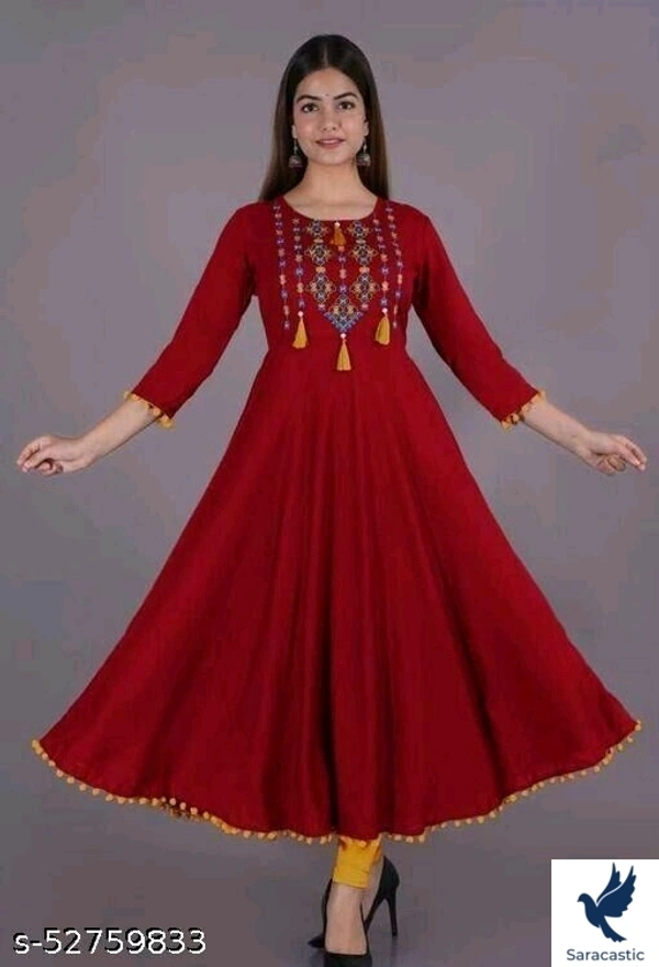 Embroidered kurti Fabric: Rayon Sleeve Length: Three-Quarter Sleeves Pattern: Embroidered Combo of: Single Sizes: XL, L, M, XXL Country of Origin: India