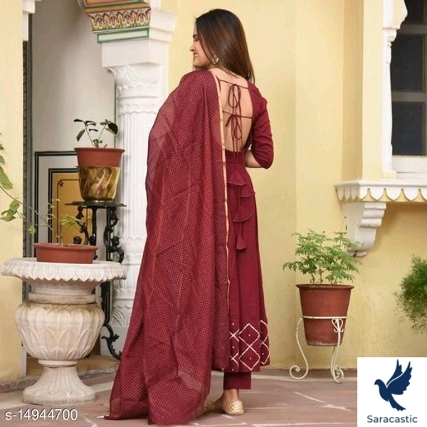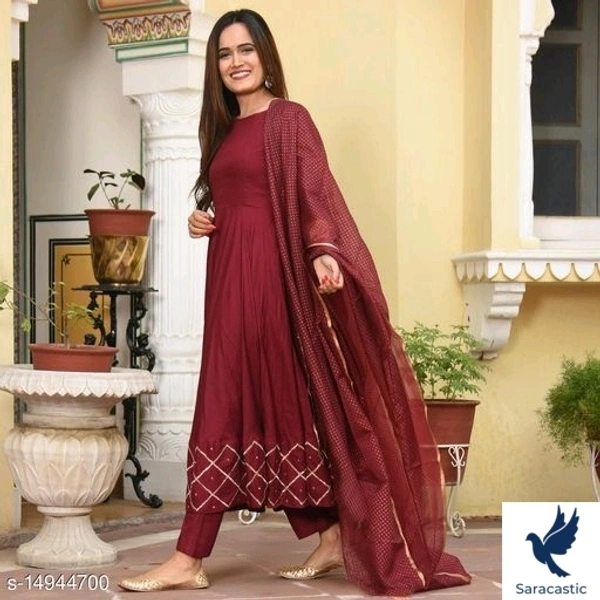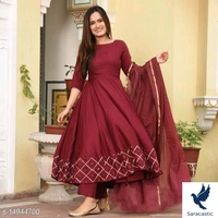 GoSriki Wine Color Rayon Anarkali Kurti with Dupatta (Bunai_Wine_1)