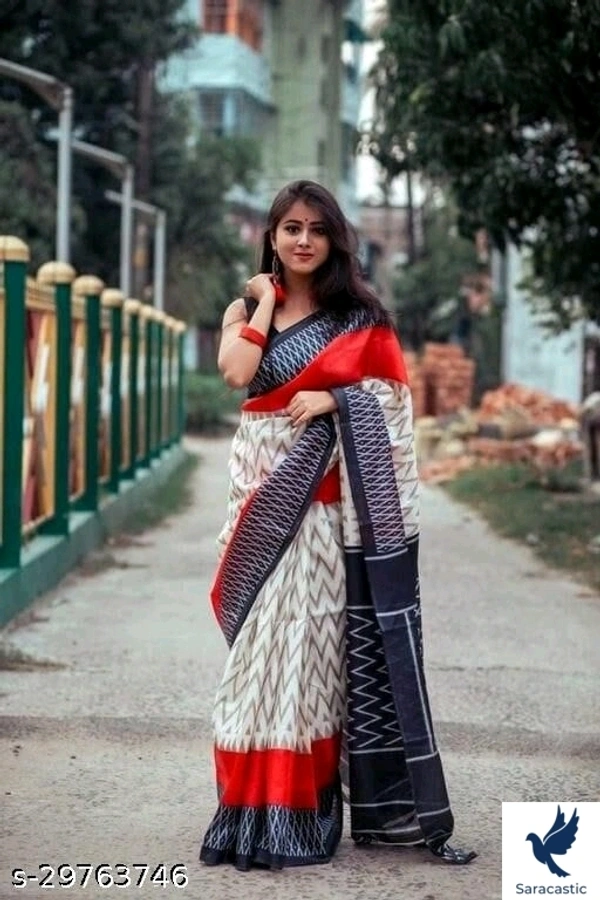 KHADI BLEND IKKAT PRINT SAREE WITH TUSSELS Saree Fabric: Khadi Silk Blouse: Running Blouse Blouse Fabric: Khadi Silk Pattern: Printed Blouse Pattern: Printed Multipack: Single Khadi Silk Saree with Blouse Fabric : Khadi Silk Length : Saree -5.5 M, Blouse Size : 0.80 M Design : Chevron Work : Printed Sizes: Free Size (Saree Length Size: 5.5 m, Blouse Length Size: 0.8 m) Country of Origin: India