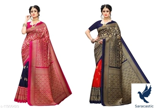 Adrika Voguish Sarees Saree Fabric: Art Silk Blouse: Running Blouse Blouse Fabric: Art Silk Pattern: Printed Blouse Pattern: Printed Multipack: Pack of 2 Sizes: Free Size (Saree Length Size: 6 m, Blouse Length Size: 0.8 m) Country of Origin: India