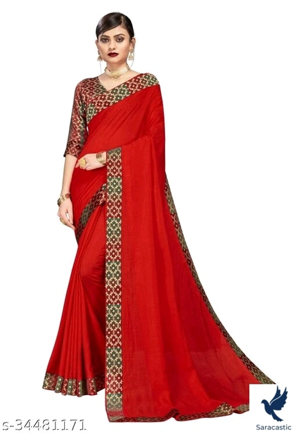 Pure Vichitra Silk Saree With premium quality Brocket lace Border Work. Looks very beautiful and attractive because of the Same Desing Blouse, Saree Boder. Blouse matching With Saree Border, Brocket Lace Work On Saree All Border And exclusive tassel. Party Ware design.