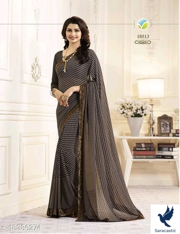 Saree Fabric: Georgette Blouse: Running Blouse Blouse Fabric: Cotton Pattern: Printed Blouse Pattern: Same as Border Multipack: Single Sizes: Free Size (Saree Length Size: 5.5 m, Blouse Length Size: 0.8 m) Country of Origin: India