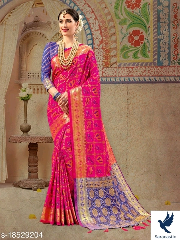 Pink Silk Musical Instruments Woven Saree With Blouse Piece Saree Fabric: Litchi Silk Blouse: Running Blouse Blouse Fabric: Silk Blend Pattern: Woven Design Blouse Pattern: Woven Design Multipack: Single Sizes: Free Size (Saree Length Size: 5.5 m, Blouse Length Size: 0.8 m) Country of Origin: India