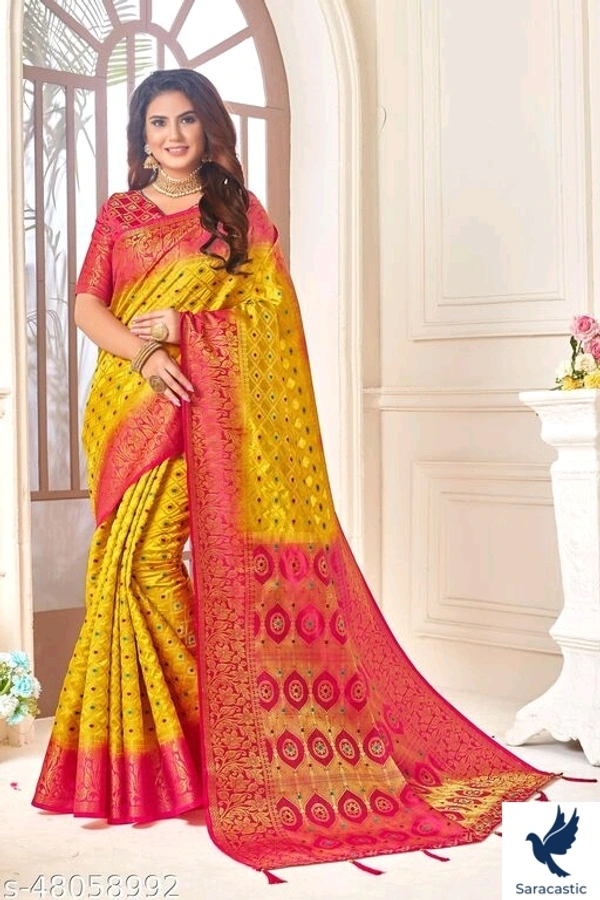Sensational kanjivaram Silk Sarees Vol 11 Saree Fabric: Silk Blouse: Running Blouse Blouse Fabric: Silk Pattern: Woven Design Blouse Pattern: Same as Saree Multipack: Single Sizes: Free Size (Saree Length Size: 5.5 m, Blouse Length Size: 0.8 m) Country of Origin: India