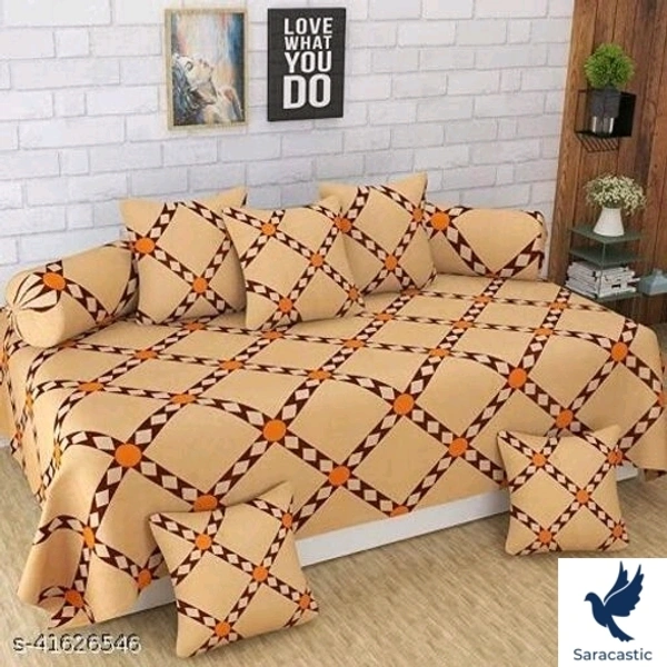 Sargun enterprises makes super soft diwan set of printed designs which contains 1 single bedsheet, 2 bolster cover & 5 cushion covers. Bedsheet Fabric: Cotton Bolster Cover Fabric: Cotton Cushion Cover Fabric: Cotton Type: Diwan Set No. of Bedsheets: 1 No. of Bolster Covers: 2 No. of Cushion Covers: 5 Print or Pattern Type: Floral Thread Count: 500 Product Breadth: 10 Inch Product Height: 1 Inch Product Length: 14 Inch Multipack: 8 Sargun enterprises make these designer supersoft diwanset. Fabric of diwanset is very soft & classy.The shining of fabric becomes more high with every wash.Fabric is washable with machine and hand also. Size of bedsheet is (60x90)inch , Bolster size is (16x31) inch & cushion size is 1(16x16). Country of Origin: India