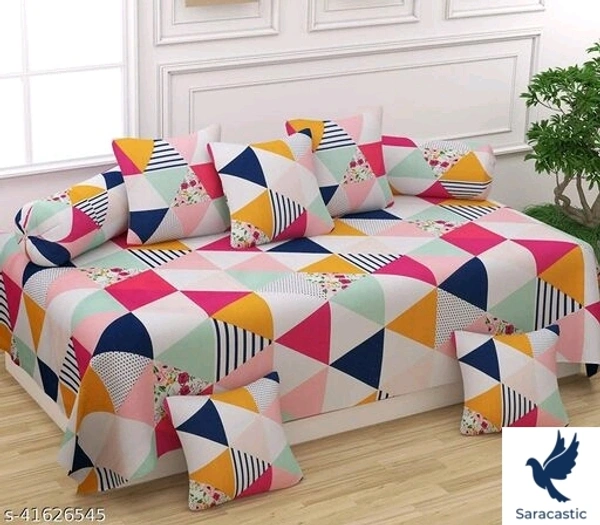 Sargun enterprises makes super soft diwan set of printed designs which contains 1 single bedsheet, 2 bolster cover & 5 cushion covers.