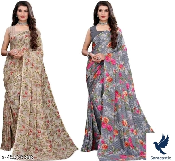 Trendy Georgette Women's Combo Sarees Fabric: Saree - Georgette Blouse - Georgette Size: Saree Length - 5.3 Mtr Blouse Length - 0.70 Mtr Description: It Has 2 Pieces Of Sarees With 2 Pieces Of Blouse Work: Printed Country of Origin: India