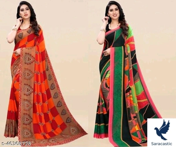 Trendy Georgette Women's Combo Sarees Fabric: Saree - Georgette Blouse - Georgette Size: Saree Length - 5.3 Mtr Blouse Length - 0.70 Mtr Description: It Has 2 Pieces Of Sarees With 2 Pieces Of Blouse Work: Printed Country of Origin: India