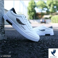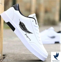 Trendy Men's White Casual Shoes Material: Syntethic Leather Sole Material: Rubber Fastening & Back Detail: Lace-Up Sizes: IND-7, IND-6, IND-10, IND-9, IND-8 Country of Origin: India