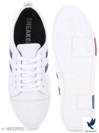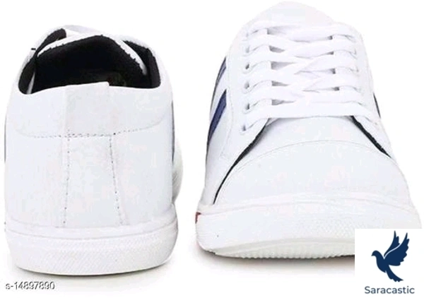 Trendy Men's White Casual Shoes Material: Syntethic Leather Sole Material: Rubber Fastening & Back Detail: Lace-Up Sizes: IND-7, IND-6, IND-10, IND-9, IND-8 Country of Origin: India